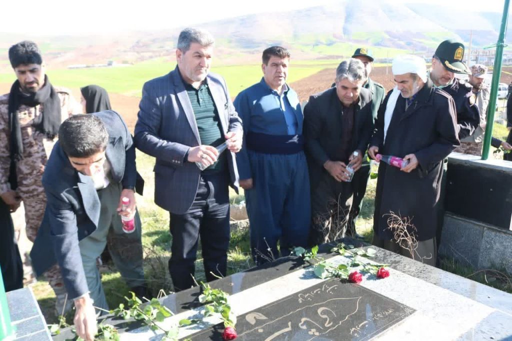 به مناسبت روز «بزرگداشت شهدا» و سالروز صدور فرمان حضرت امام خمینی(ره) مبنی بر تاسیس بنیاد شهید انقلاب اسلامی ایران باحضور باوندپور فرماندار شهرستان ثلاث باباجانی، ماموستا شیخی امام جمعه شهرستان، سرهنگ جهانبخشی جانشین فرمانده نیروی انتظامی شهرستان، نصیری معاون شهرداری تازه آباد ،خانم احمدی رئیس بنیاد شهید و امور ایثارگران شهرستان و اعضای شورای اداری شهرستان در مزار شهدای زیارت تمرخان برگزار گردید