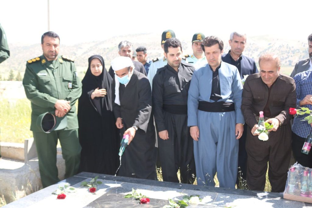 به مناسبت گرامیداشت سوم خرداد سالروز آزادسازی خرمشهر باحضور رحیمی پور معاون برنامهریزی و هماهنگی امور عمرانی فرمانداری، ماموستا شیخی امام جمعه شهرستان، نظری بخشدار مرکزی، فرماندهان نظامی و انتظامی شهرستان، خانم احمدی رئیس بنیاد شهید و امور ایثارگران شهرستان و سایر مسئولین در مزار شهدای قلقله برگزار گردید