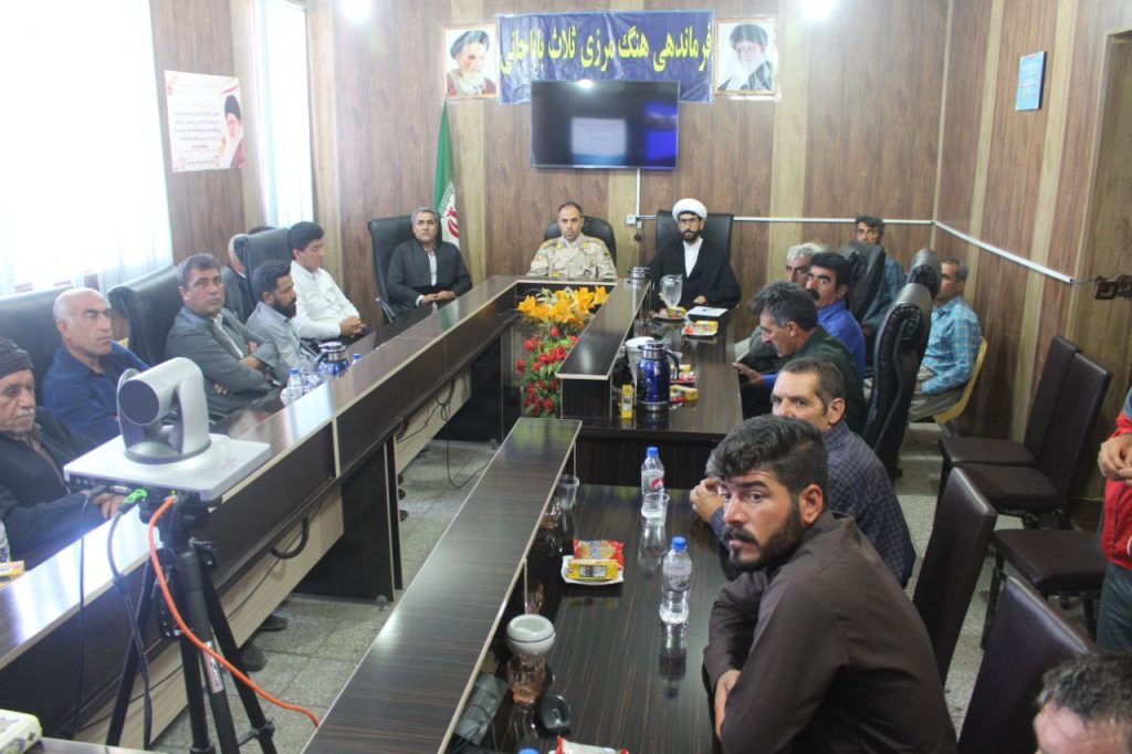به گزارش پایگاه خبری تحلیلی ثلاث آنلاین صبح امروز ؛نشست مشترک بخشداری ازگله وفرماندهی محترم هنگ مرزی شهرستان باحضورحاجی آقاجهانبخشی مسئول حوزه نمایندگی هنگ مرزی شهرستان ،شوراهای اسلامی روستا، دهیاران ومعتمدین بخش ازگله درخصوص دعوت ازمردم وحضورپرشورآنان در انتخابات پیش روی ریاست جمهوری درمحل سالن جلسات هنگ مرزی شهرستان ثلاث باباجانی ( بخش ازگله) برگزار شد