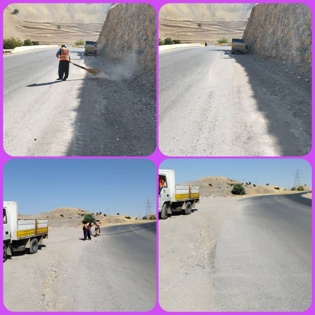 پاکسازی و جاروزنی سطح جاده از سنگریزه و شن
